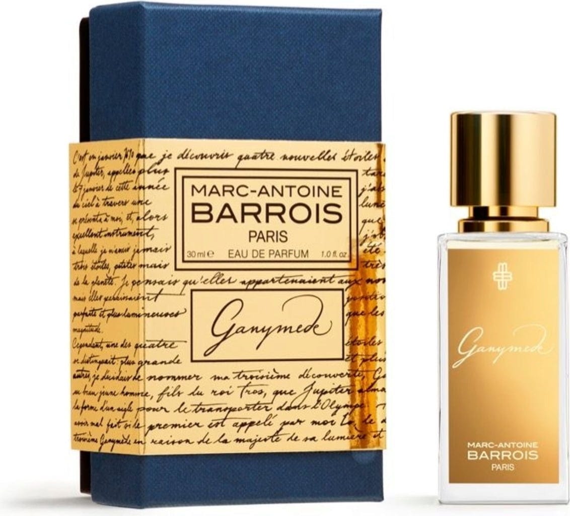 GANYMEDE is gecreëerd door de parfumeur Quentin Bisch en de modeontwerper Marc-Antoine Barrois. Uit deze samenwerking is een elegante en verrassend harmonieuze compositie ontstaan van mandarijn, viooltje, Italiaanse strobloem en suède. Dit meesterwerk is vernoemd naar een mysterieuze Jupitermaan, ontdekt in 1610 door niemand minder dan Galileo. Gefascineerd door het mysterieuze licht van het oppervlak, koos Galileo de naam Ganymedes, ontleend aan de Griekse mythologie. Ganymedes gold als 'de mooiste van alle stervelingen', wat de jaloezie van de goden opwekte.