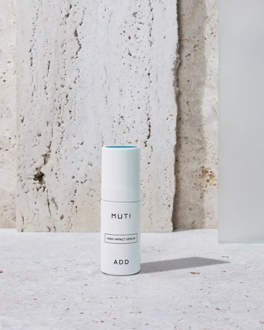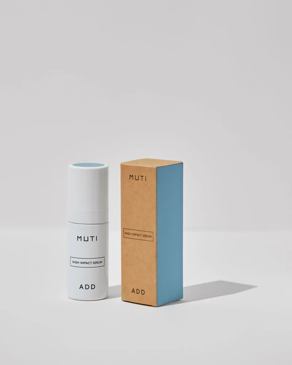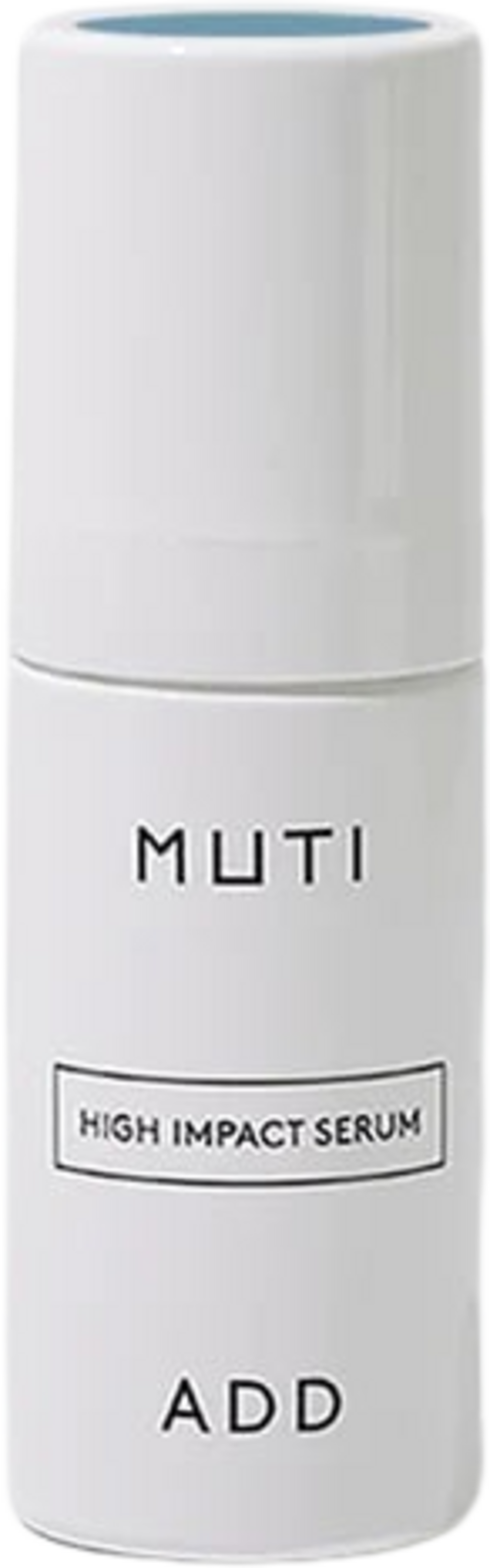 De High Impact Serum van MUTI is een fijne, snel absorberende emulsie, gebaseerd op twee precieus op elkaar afgestemde combinaties. Enerzijds op een vochtcomplex, dat gebaseerd is op laag- en hoogmoleculair hyaluronzuur en zo de huid van binnenuit opvult. Anderzijds bevat het serum een peptidecomplex, dat expressierimpels minimaliseert en voorkomt. Versterkend vitamine E, een plantaardig extract van Zuid-Amerikaanse paracressen en hoogactief tripeptide vullen de formulering aan en helpen de tekenen van huidveroudering te verminderen. Zo geniet je van een frisse, verbeterde en vooral egale huidstructuur.