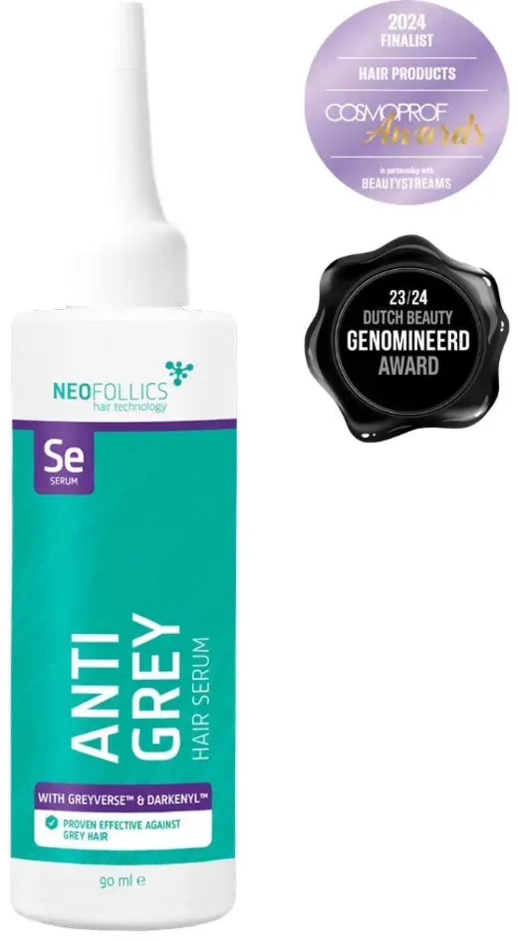 Het Anti-Grey Hair Serum van Neofollics is ontwikkeld om vroegtijdig grijs worden te minimaliseren en de natuurlijke pigmentatie langer te behouden.