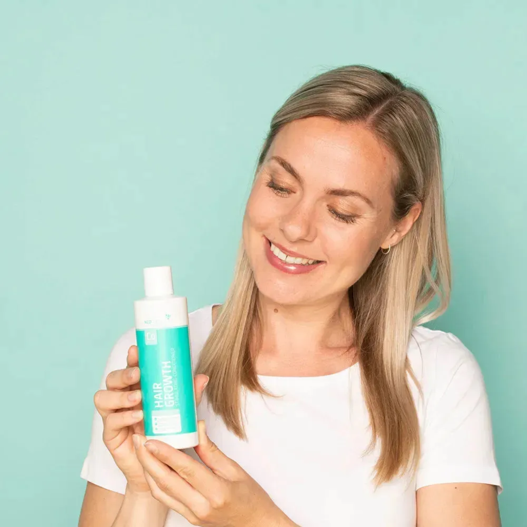 - Was het haar eerst met een shampoo, bij voorkeur met de Hair Growth Shampoo.