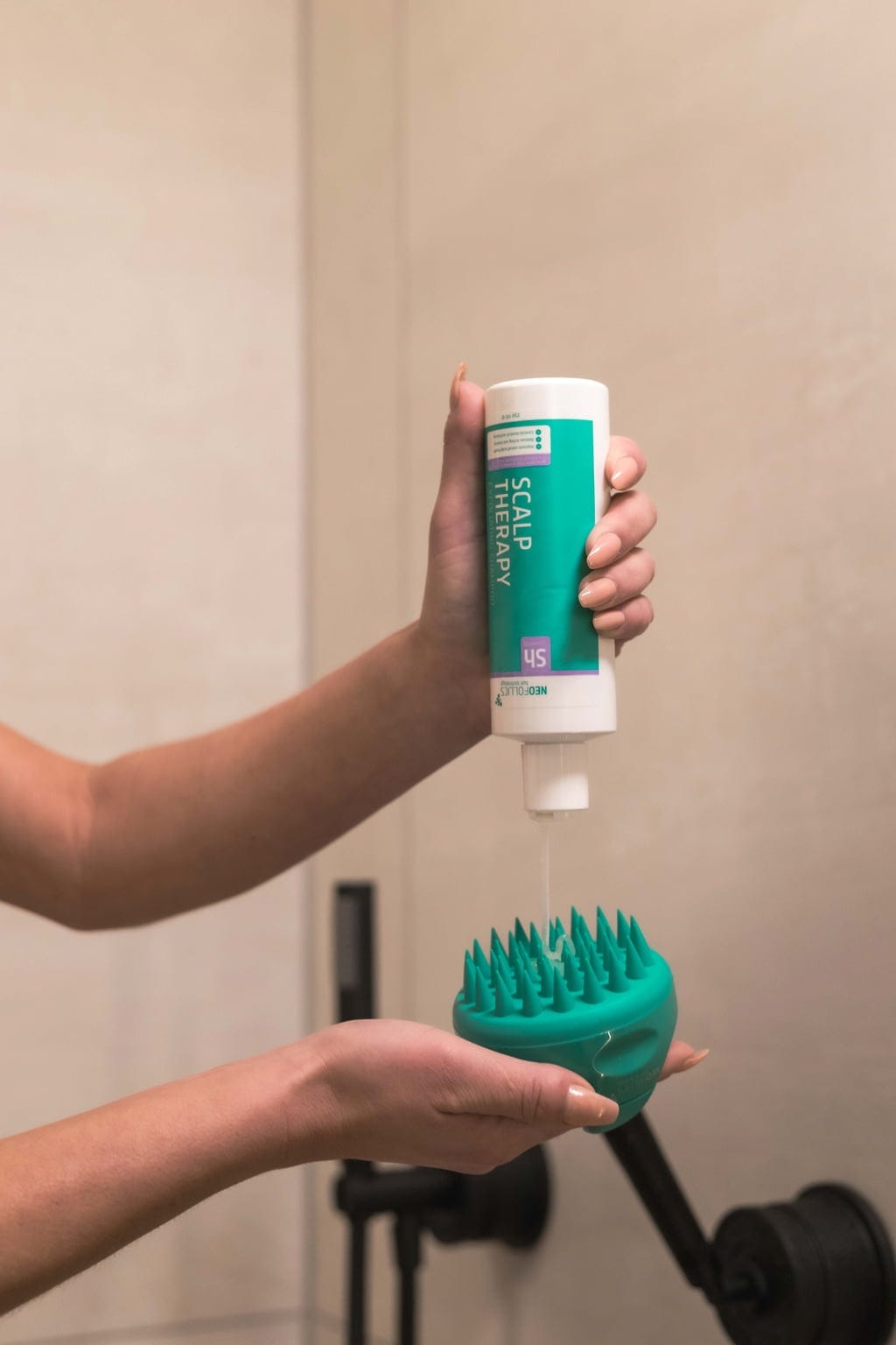 De massageborstel van Neofollics helpt productresten, roos, vuil en talg van de hoofdhuid te verwijderen. De zachte en flexibele siliconen borstel scrubt de hoofdhuid zachtjes.