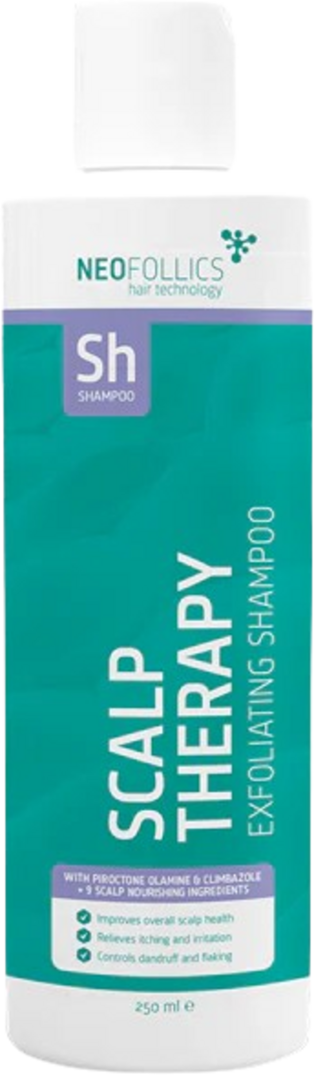 De Scalp Therapy Exfoliating Shampoo van Neofollics is een exfoliërende shampoo die speciaal is samengesteld voor een breed scala aan hoofdhuidproblemen: