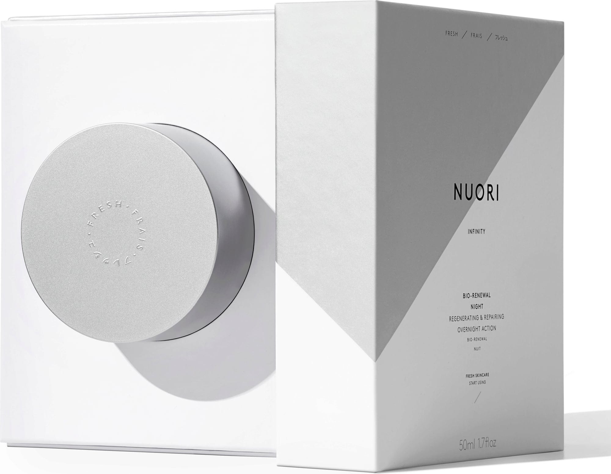 De Bio-Renewal Night van Nuori is een intens voedende nachtcrème, geschikt voor alle huidtypen, met name voor de droge en rijpere huid. De crème is gevuld met voedende ingrediënten zoals granaatappelzaadolie, witte thee-extract, jojobaolie en sheaboter.