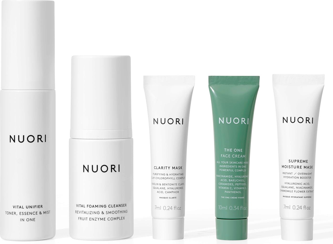 In deze Discovery Kit vind je de vijf bestverkopende producten van NUORI in één pakket. Het is geschikt voor alle huidtypes en verzorgt je volledige gezichtsverzorgingsroutine. Daarnaast is deze set ideaal als cadeau, voor op reis of om kennis te maken.
