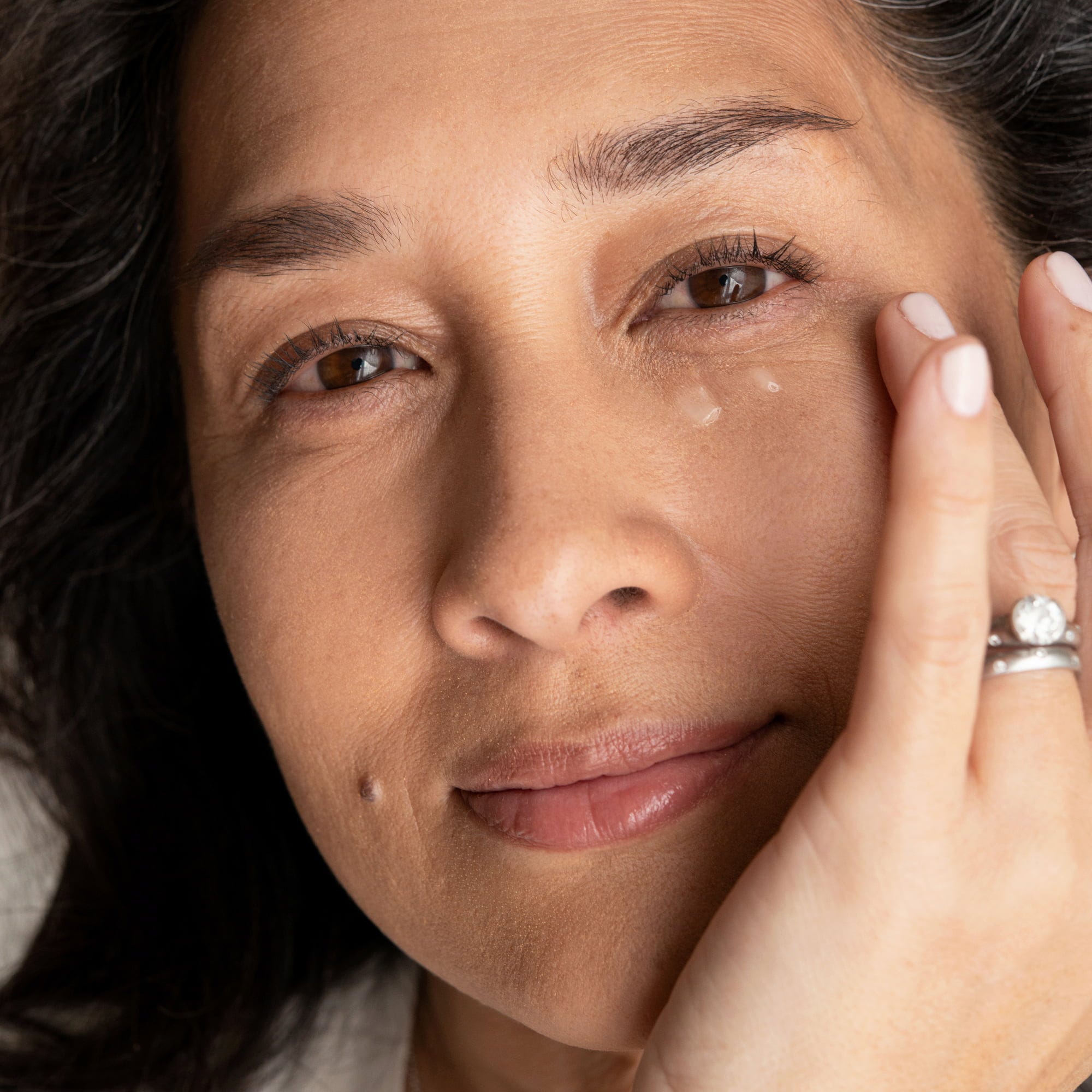 - Zachtjes in de zone onder de ogen inkloppen.