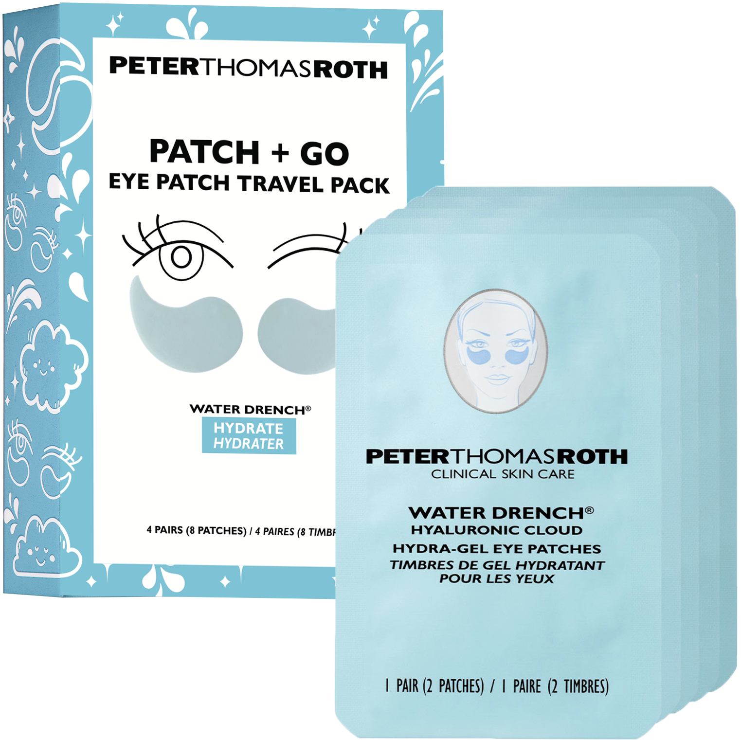 Het Patch + Go Travel Pack van Peter Thomas Roth bevat vier gel-patches voor de oogcontour, die intensieve hydratatie bieden en direct het uiterlijk van fijne lijntjes en donkere kringen verbeteren. De pads bevatten hyaluronzuur in verschillende groottes, ceramide NP, collageen en heemstwortel-extract. Deze ingrediënten verzachten de huid en verminderen het uiterlijk van fijne lijntjes. Cafeïne en arnica zorgen bovendien voor een verhelderend en revitaliserend effect.