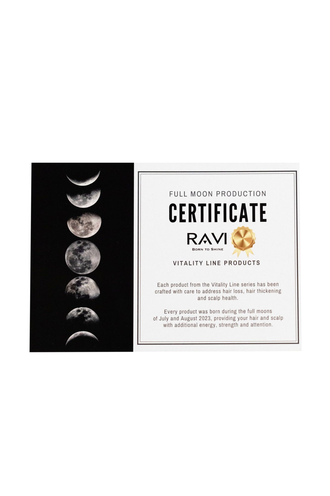 De Vitality Line Shampoo van RAVI Born To Shine zorgt voor een mooiere en gezondere uitstraling van vooral beschadigd, dun en verzwakt haar. De unieke veganistische formule is verrijkt met lariksextract, groene thee, zink, arginine en andere actieve ingrediënten die uitsluitend tijdens volle maan worden gemaakt. Hierdoor krijgt het haar nieuwe kracht en leven. Het haar wordt van de wortels tot de punten versterkt en beschermd, en de haarstructuur wordt verbeterd. Tegelijkertijd reinigt de veganistische shampoo de hoofdhuid, verbetert de gezondheid ervan en kan bovendien de haargroei ondersteunen. Het haar lijkt sterker en glanzender.