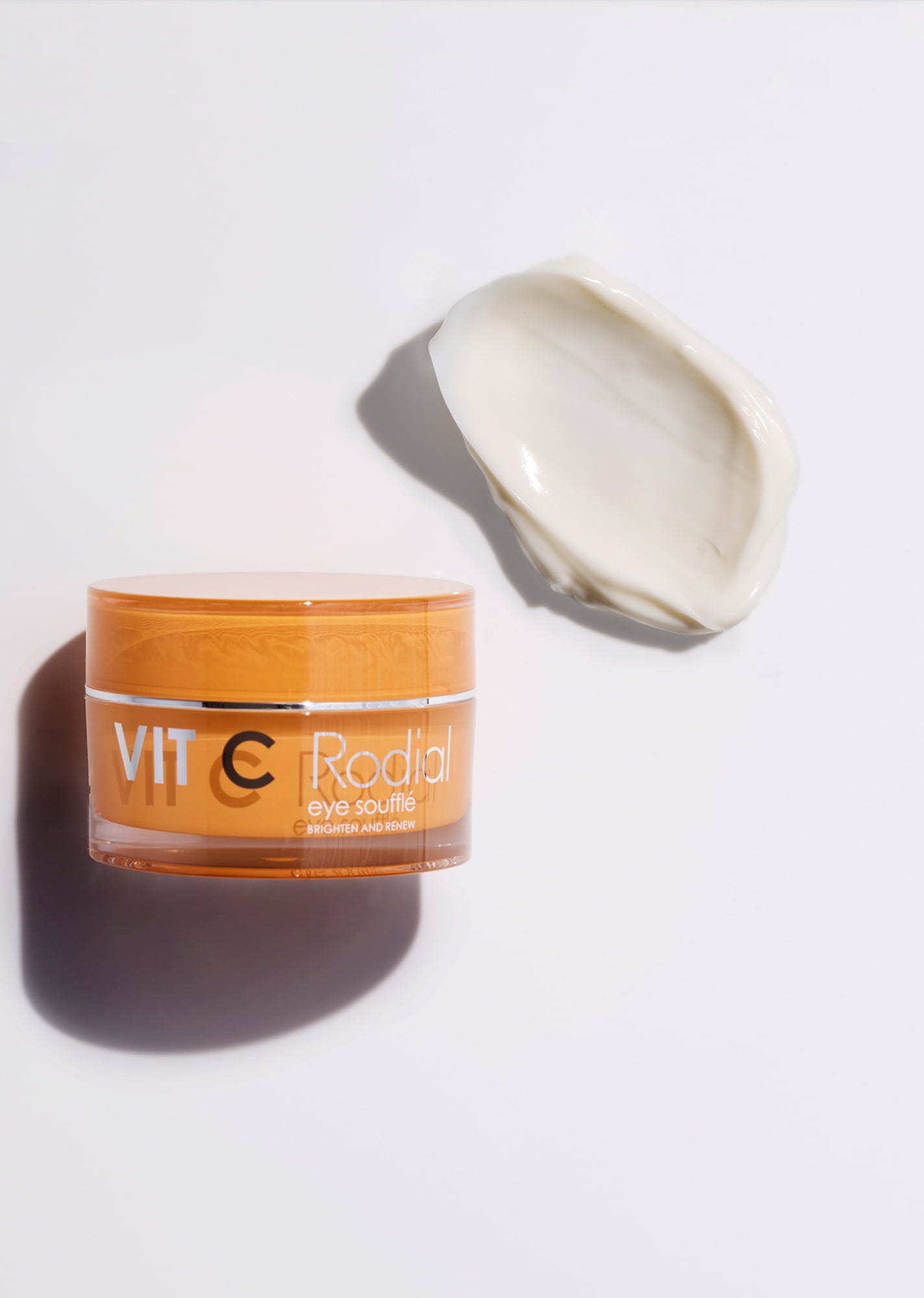 De Vit C Eye Souffle van Rodial is een verstevigende huidverzorging die de oogcontour voorziet van essentiële voedingsstoffen en het gebied vitaal en stralend laat verschijnen. De oogverzorging helpt rimpels, gedehydreerde huid en donkere kringen te voorkomen. De werkstofcocktail is gebaseerd op vitamine C, peptiden, wortelzaadolie en hyaluronzuur. Vitamine C heeft sterke antioxiderende eigenschappen en werkt tekenen van huidveroudering tegen. Hyaluronzuur verzorgt de huid intensief met waardevolle hydratatie. Peptiden zorgen voor een gladde, stevige huid door de productie van collageen te stimuleren. Wortelzaadolie bevordert de regeneratie.