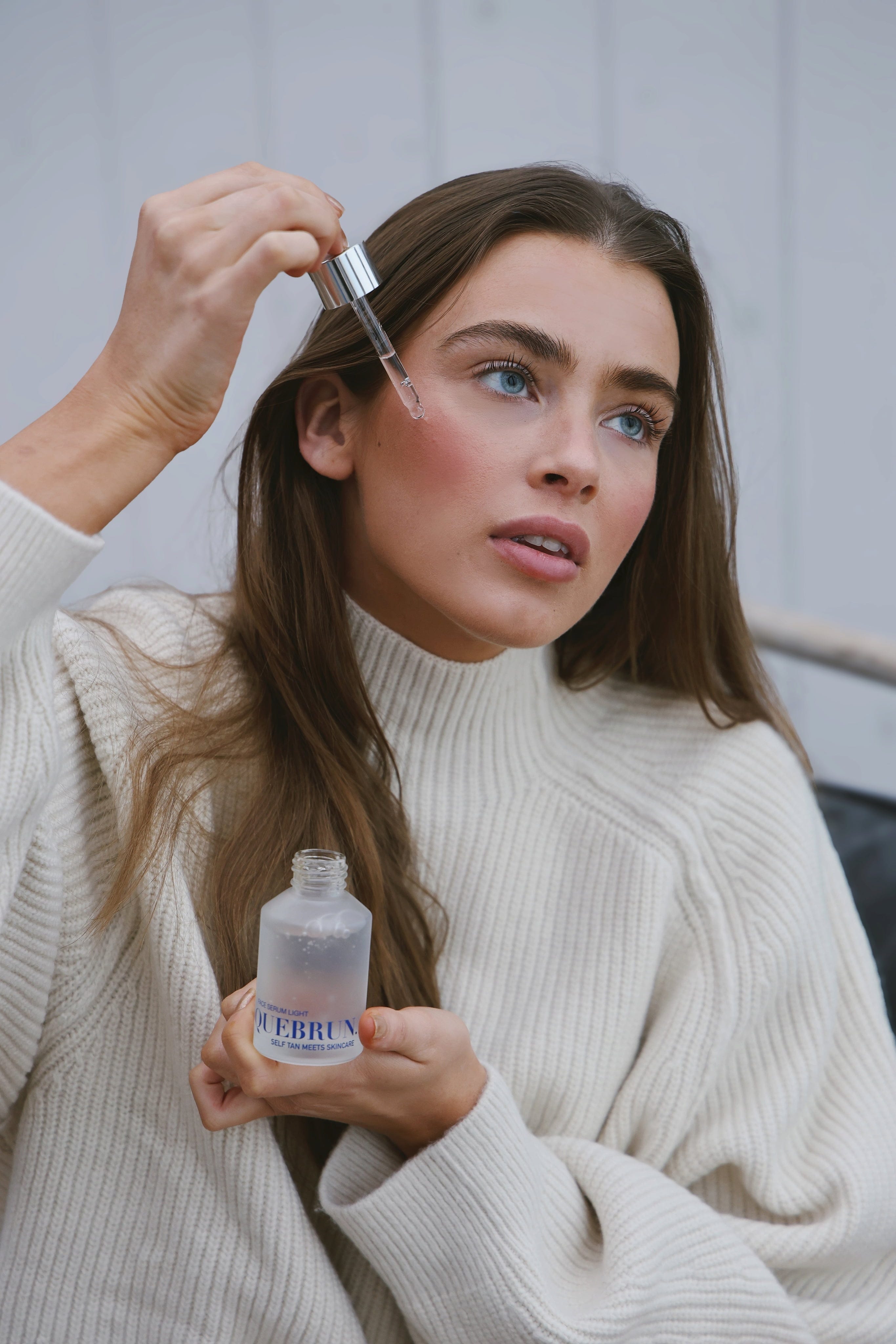 De Face Serum van ROQUEBRUN geeft je een natuurlijk ogende bruine teint en voorziet je huid tegelijkertijd van intensieve hydratatie. Je kunt het serum direct op je gereinigde huid aanbrengen of combineren met je dagelijkse verzorgingsproducten. Hoogwaardige ingrediënten zoals plantaardig retinol, hyaluronzuur, collageen en aloë vera ondersteunen je bij je verzorgingsroutine en maken de huid gladder, steviger en rustgevender. Het zelfbruinerserum is geschikt voor alle huidtypes, kan 's morgens en 's avonds worden toegepast en geeft je een natuurlijke bruine kleur zonder oranje tint. Het lichte, niet-vette serum trekt snel in, is geurloos en toont resultaten binnen 4-8 uur die 3-4 dagen blijven. Geniet van een zongebruinde teint terwijl je je huidverzorgingsroutine optimaliseert.