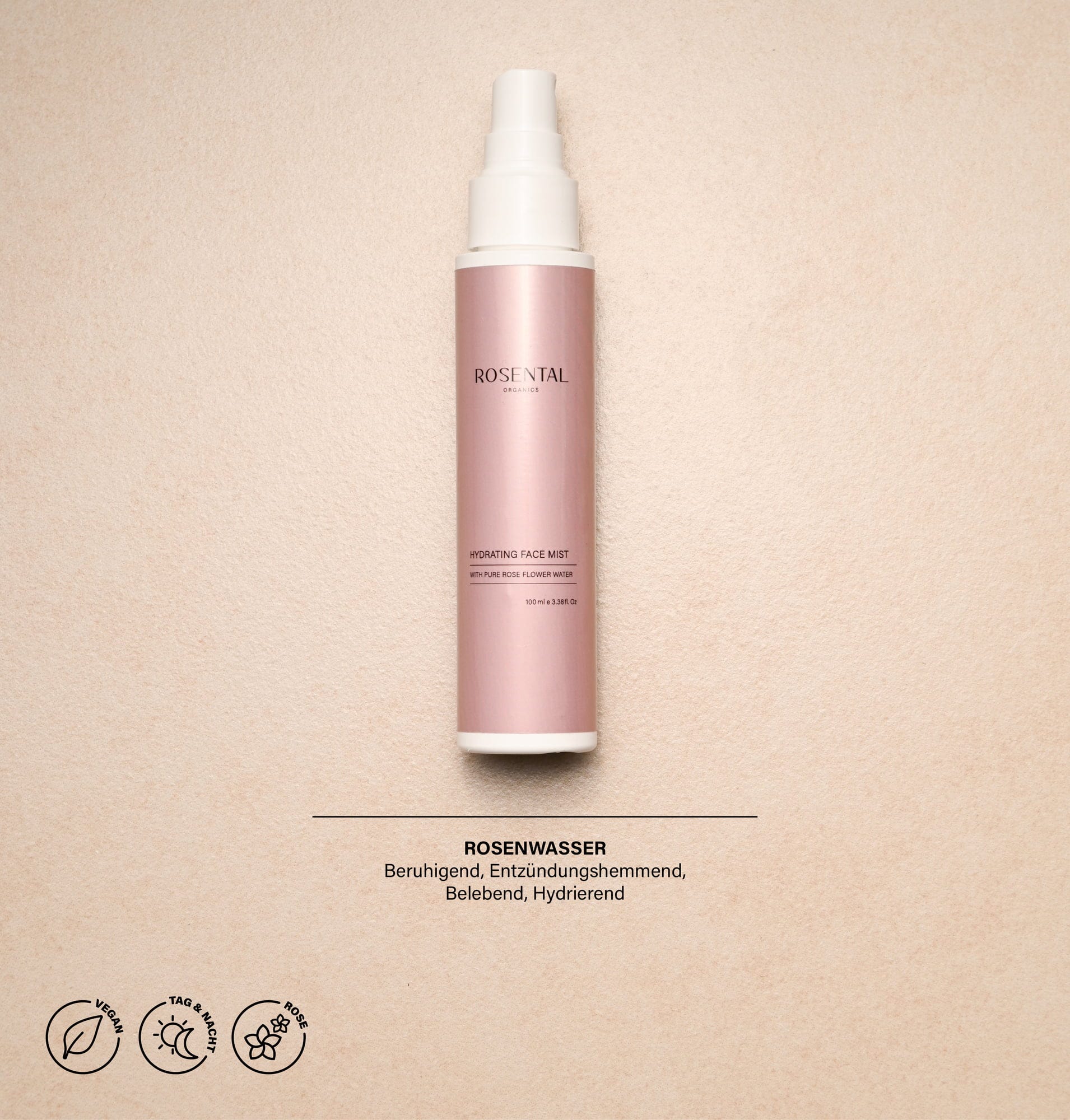 De Hydrating Face Mist van Rosental Organics bestaat uit 100% puur rozenwater. Deze spray zorgt voor intensieve hydratatie en verfijnt de structuur van je huid, terwijl de zachte geur van rozen voor een weldadig gevoel zorgt. De face mist is rijk aan antioxidanten, en beschermt je gevoelige gezichtshuid tegen schadelijke invloeden van buitenaf.