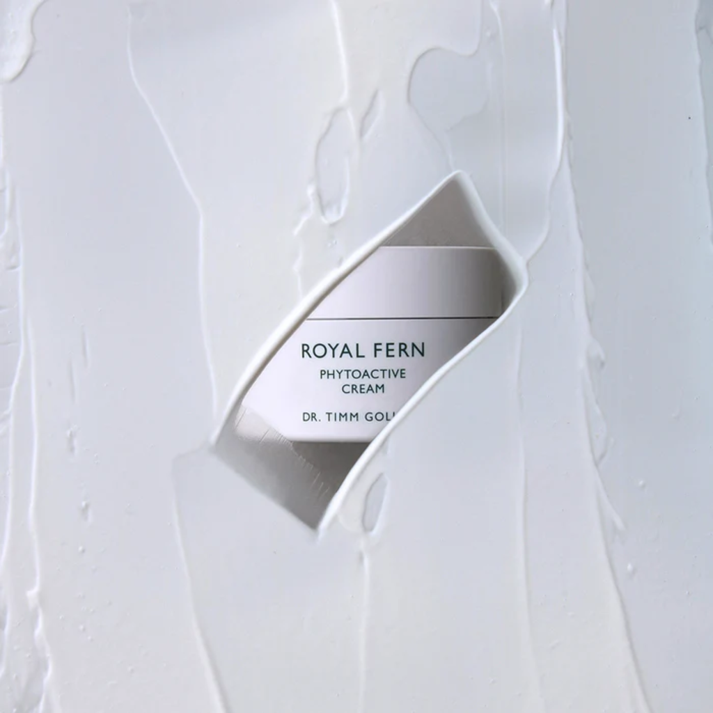 De Phytoactive Cream van Royal Fern is een snel absorberende en lichte crème die de huid onmiddellijk revitaliseert en dankzij het gepatenteerde Royal Fern Complex twaalf uur lang hydrateert. Hyaluronzuur ondersteunt hierbij met zijn hydraterende eigenschappen voor een volle, frisse huid. Het maakt ook fijne lijntjes minder zichtbaar. Het complex heeft ook antioxidatieve effecten en stimuleert tegelijkertijd de celgroei. Hierbij wordt de collageenproductie gestimuleerd en pigmentatie verminderd. Hiervoor is vitamine C, een sterk antioxidant, verantwoordelijk, dat ook helpt bij het helderder maken van de huid. Het resultaat is een stralende, egale teint.
