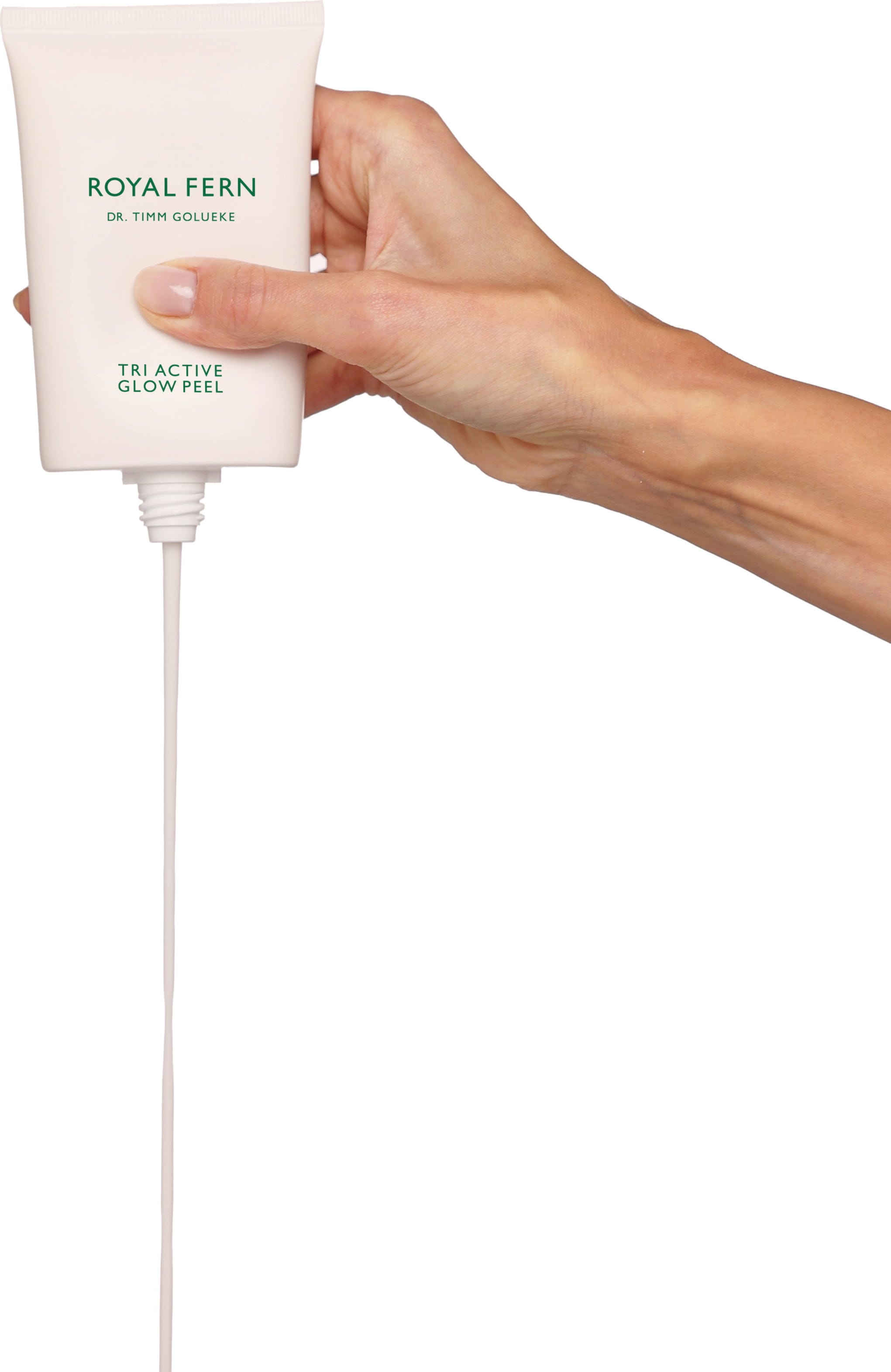 De Tri Active Glow Peel van Royal Fern combineert chemische, enzymatische en mechanische peeling-technieken om dode huidcellen zachtjes te verwijderen en je huid te laten stralen. Een combinatie van 12% AHA & PHA, gefermenteerde radijswortel-enzymen en ultrafijn bamboepoeder verfijnt de huidtextuur, reinigt en geeft een zijdezacht huidgevoel. De formule ondersteunt de celvernieuwing en zorgt tegelijkertijd voor een zichtbaar frisse en egale uitstraling. Bij regelmatig gebruik kan de peeling vermoeide, doffe huid revitaliseren en voor een stralende teint zorgen—ideaal als aanvulling op je thuisverzorgingsroutine.