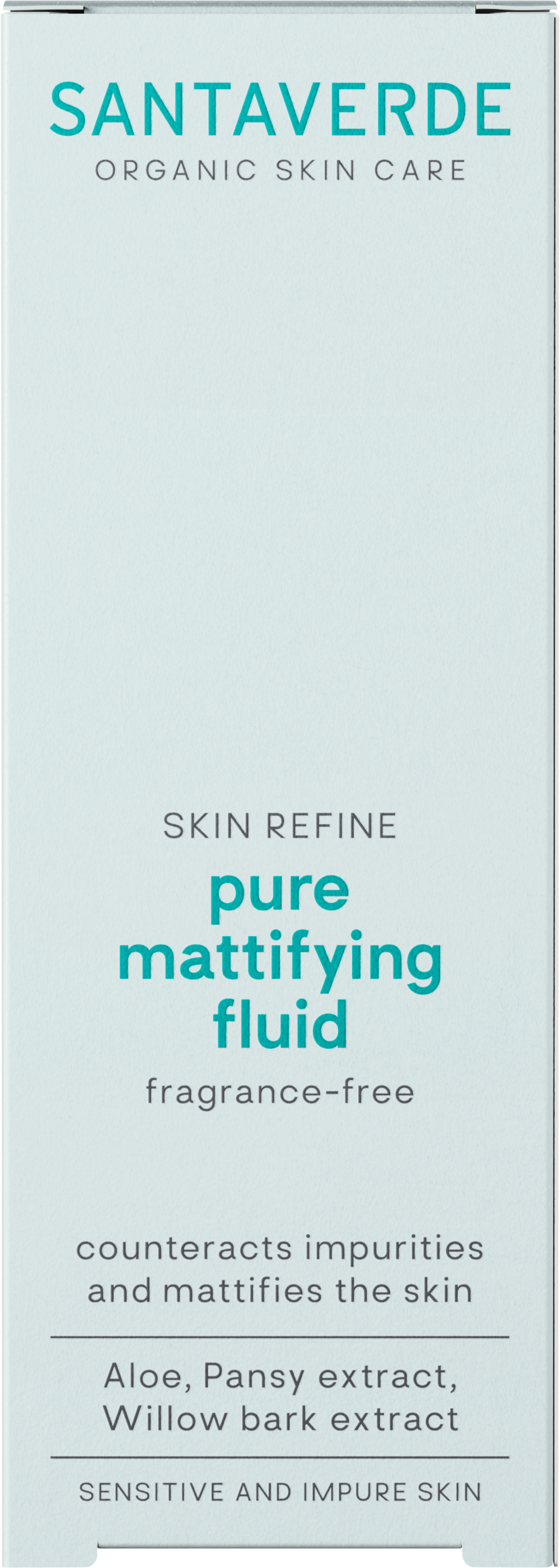 SANTAVERDE's Pure Mattifying Fluid is gemaakt met aloë vera sap, verzachtende teunisbloem en rozenbottel oliën, viooltjes extract en hyaluronzuur. De huid is bevrijd van onzuiverheden, voorzien van vocht en de natuurlijke huidbarrière is goed beschermd tegen invloeden van buitenaf. Door het beschermende en voedende effect van de huid, ziet hij er helderder en zuiverder uit.