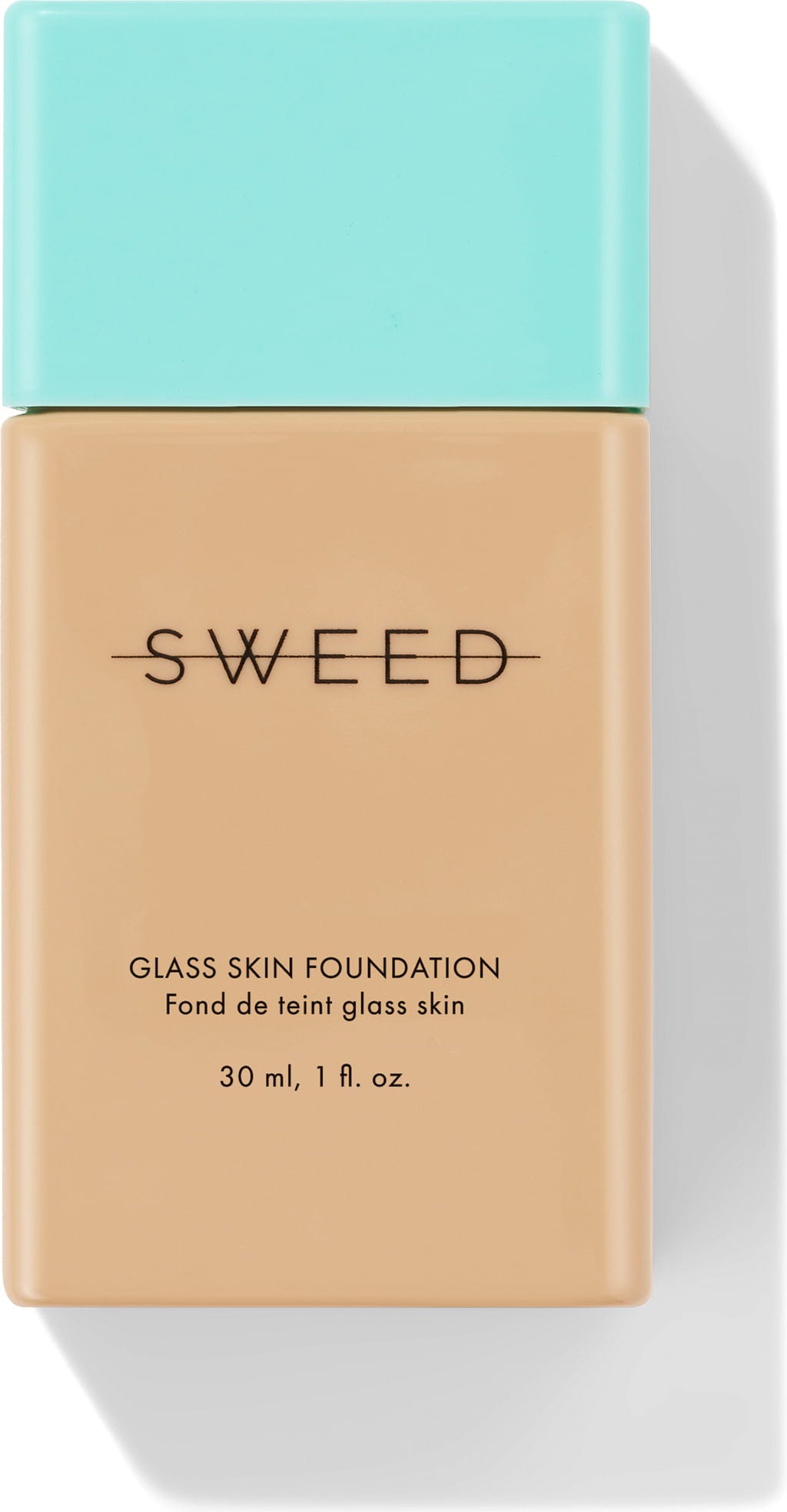 De lichte, vloeibare formule van de Glass Skin Foundation van SWEED Beauty zorgt voor een natuurlijk 'tweede-huideffect' dat de hele dag aanhoudt.