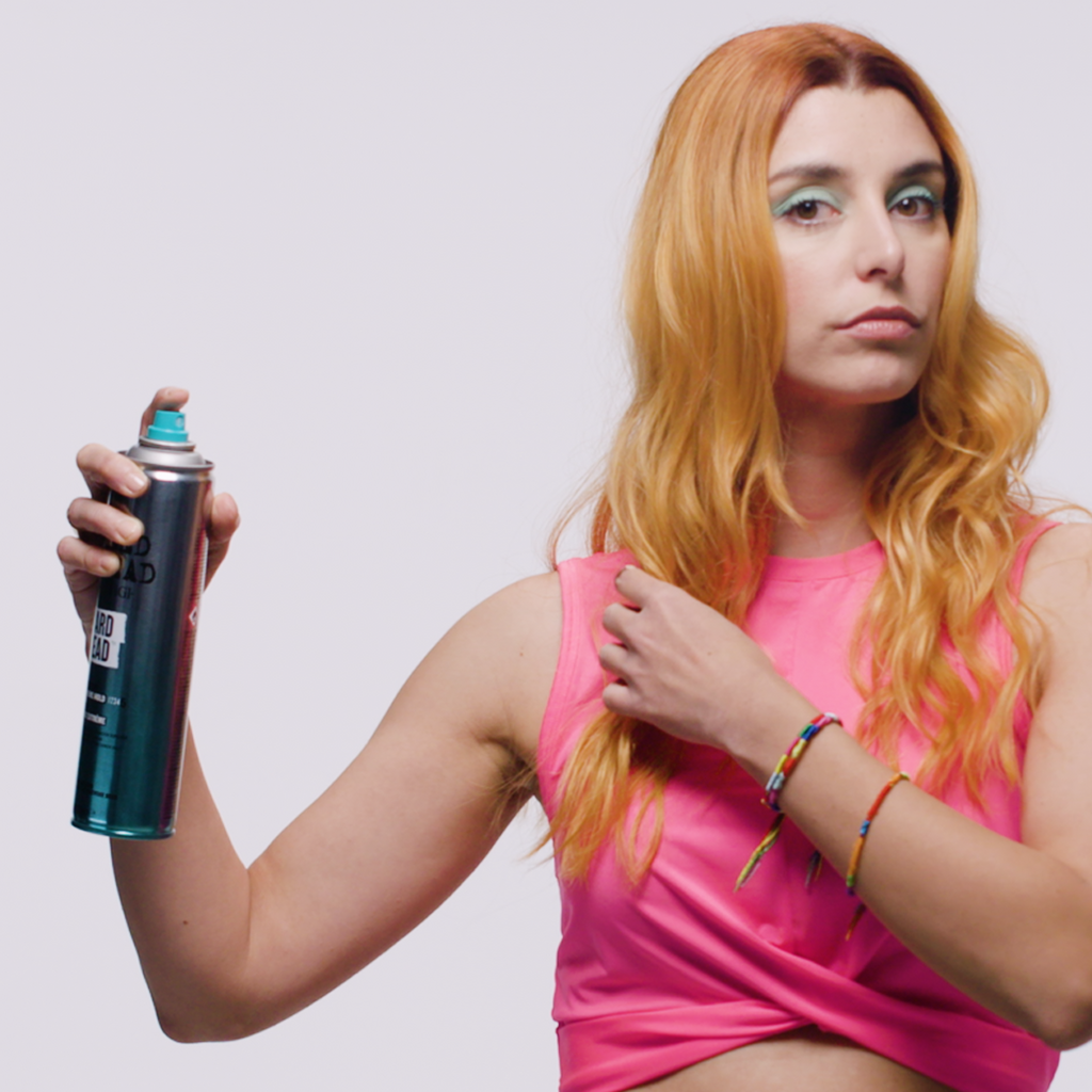 Style je haar en spray de Bed Head Hard Head Hairspray vanaf 25 - 30 cm afstand op je gestylde kapsel.