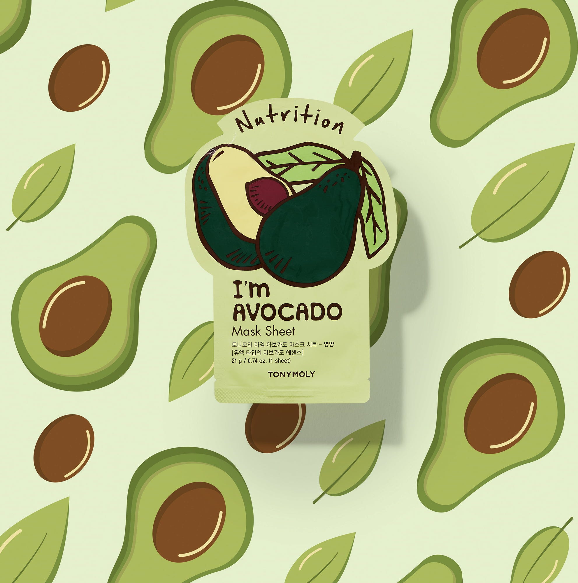 De I´m Avocado Mask Sheet van het Koreaanse merk TONYMOLY is bijzonder voedend. Het 3-laagse viscosedoek is verrijkt met avocado-extract en andere voedende en verzorgende ingrediënten, om de huid effectief van voedingsstoffen te voorzien en te verzorgen. Na gebruik straalt de teint en voelt de huid zeer verzorgd aan.