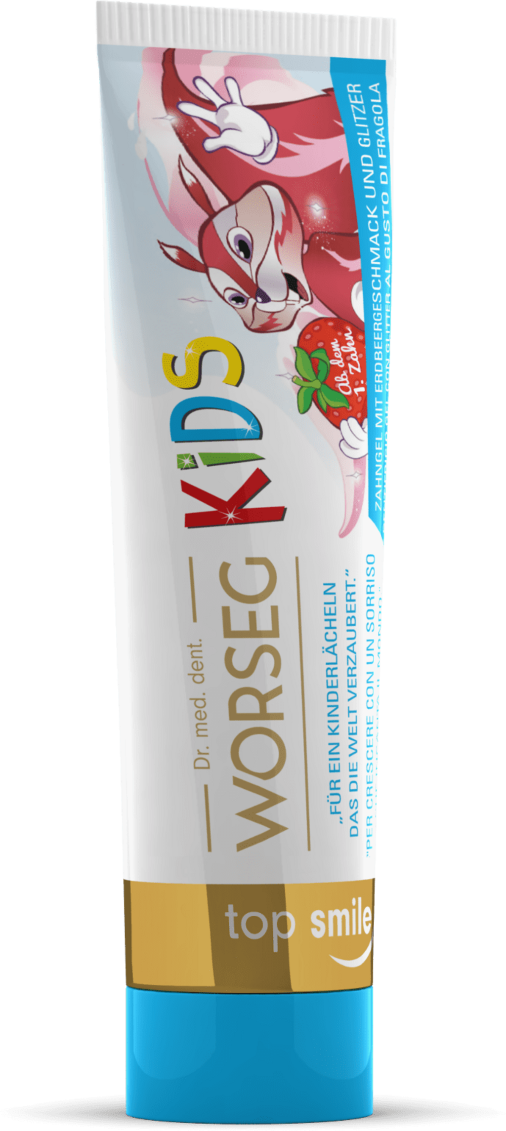 De KIDS Aardbei van Top Smile is een tandpasta ontwikkeld door tandartsen met een heerlijk fruitige aardbeiensmaak en glitters. Verrijkt met calcium en fluoride, versterkt het de tanden van kinderen. Het toegevoegde vitamine E bevordert een gezond tandvlees tijdens het wisselen van de tanden. Het product is vrij van microplastics, parabenen, en bevat geen kunstmatige kleurstoffen. Zo wordt tanden poetsen ook voor jouw kind een plezier!