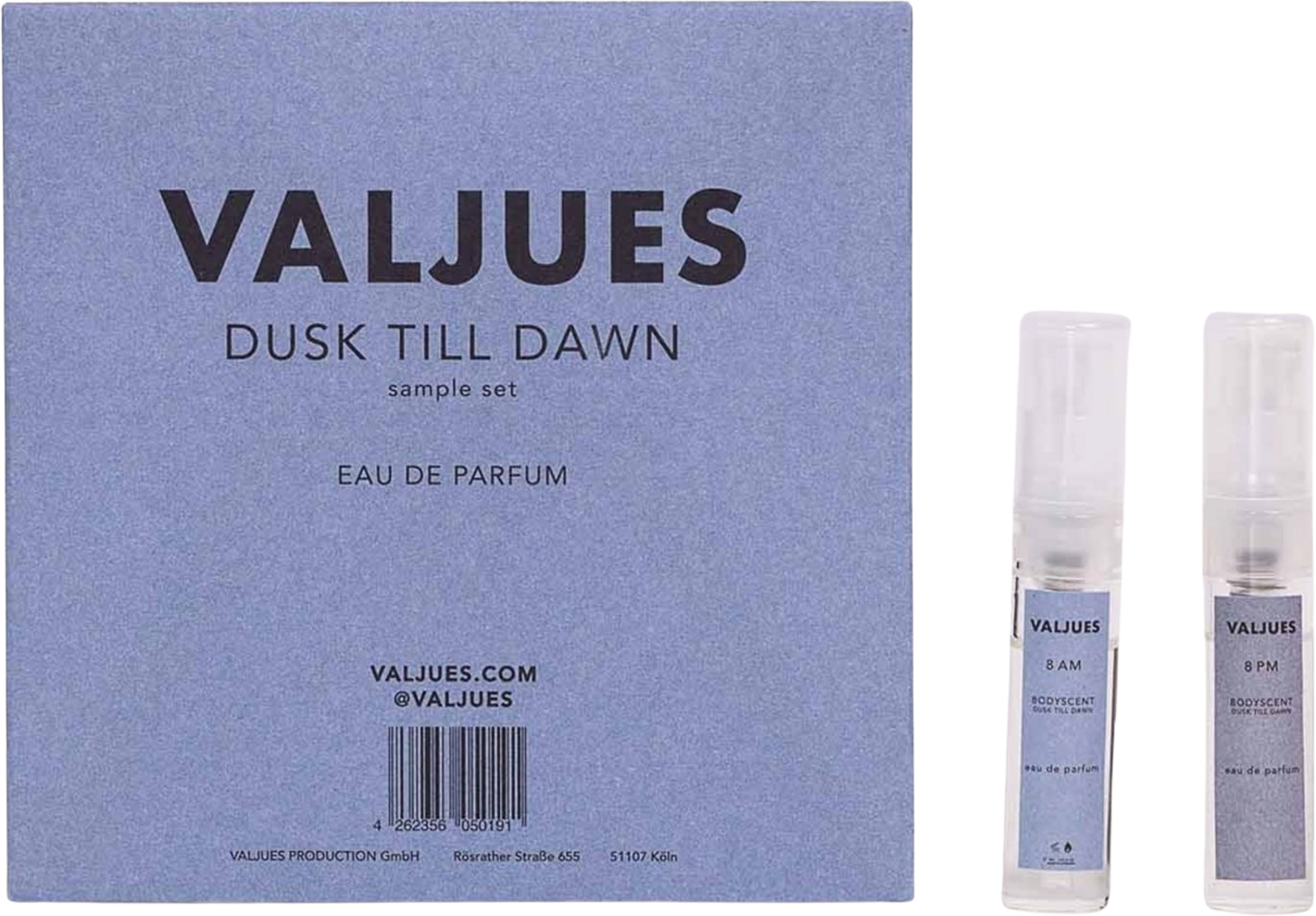De parfumcollectie From Dusk Till Dawn van VALJUES begeleidt je door dag en nacht. De set bevat twee geuren die de balans tussen innerlijke en uiterlijke wereld alsmede licht en duisternis herstellen. Elke dag biedt je de kans om je open te stellen voor de wereld en je zintuigen te verbinden. Maar wanneer de nacht aanbreekt, kun je je terugtrekken en je eigen innerlijke wereld ontdekken. Grijp de kans en beleef al deze verbindingen!