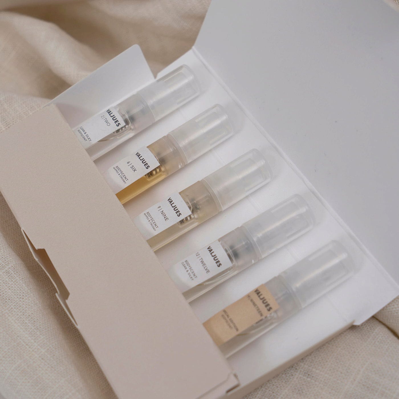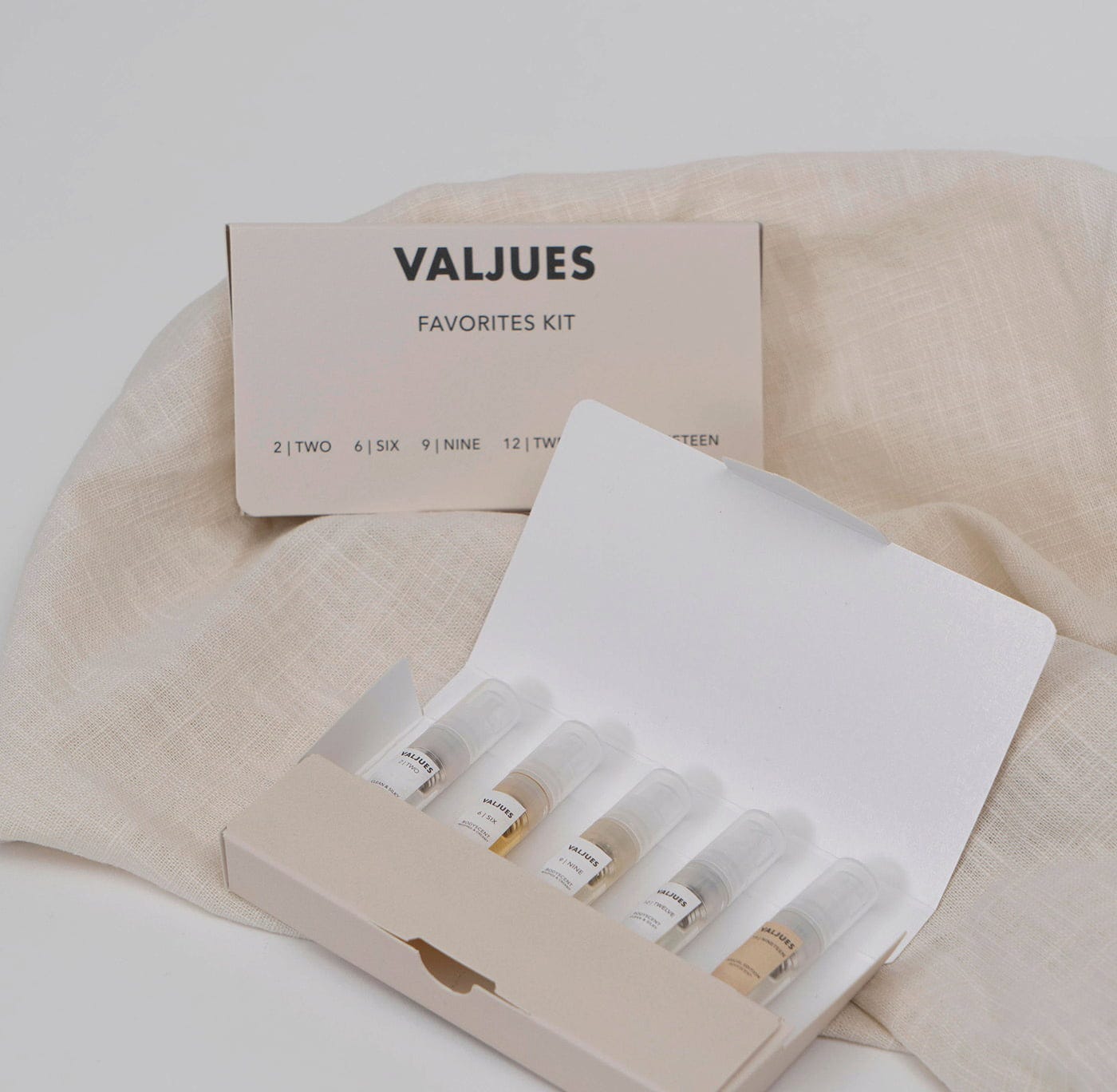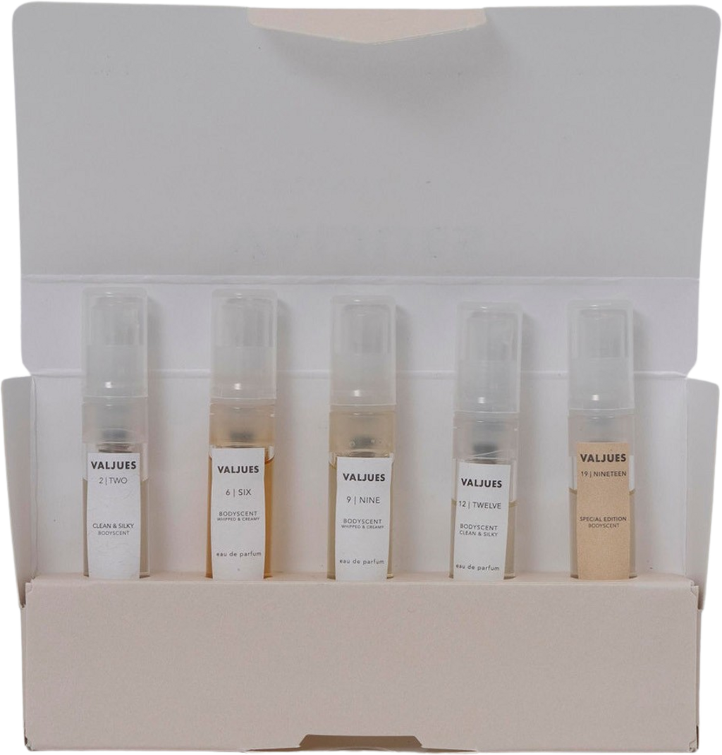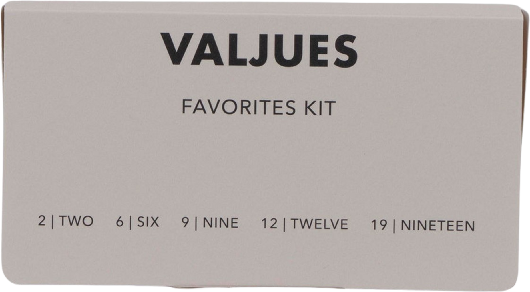 Het Favorite Kit bevat de vijf populairste Eau de Parfums van VALJUES in een handig reis- of proefverpakking. Bloemig, fris of rokerig - voor elke liefhebber en gelegenheid is er een passende geur. Elk parfum vertelt zijn eigen verhaal en verrijkt je belevenis met een geurige ervaring.