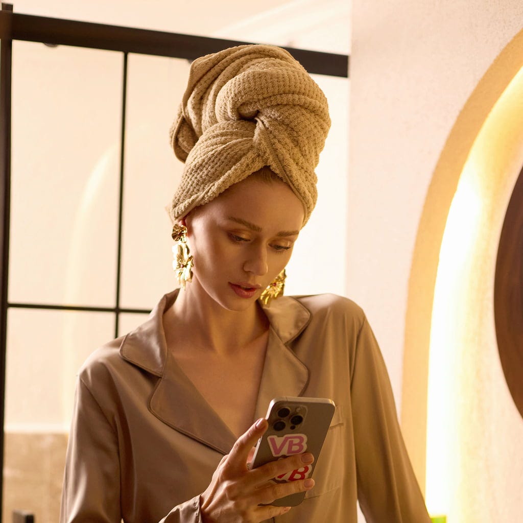 De haardoek van Veganboost is gemaakt van microvezel, waardoor je haar snel en efficiënt wordt gedroogd. De mix van polyester en polyamide maakt de doek bijzonder zacht en minimaliseert wrijving, zodat je haar wordt beschermd tegen beschadiging. Dankzij de lus aan de achterkant kan de doek moeiteloos tot een turban worden gewikkeld en bevestigd.