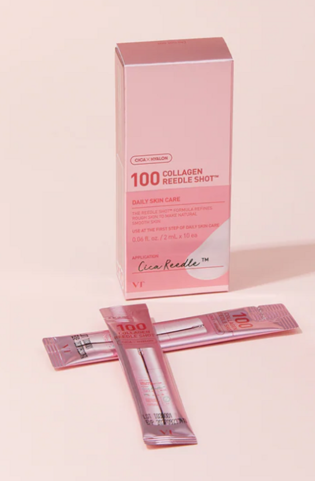 Bij de Collagen Reedle Shot 100 Stick Pouches van VT Cosmetics gaat het om 10 stuks Reedle Shots 100 in handige travelsize zakjes.