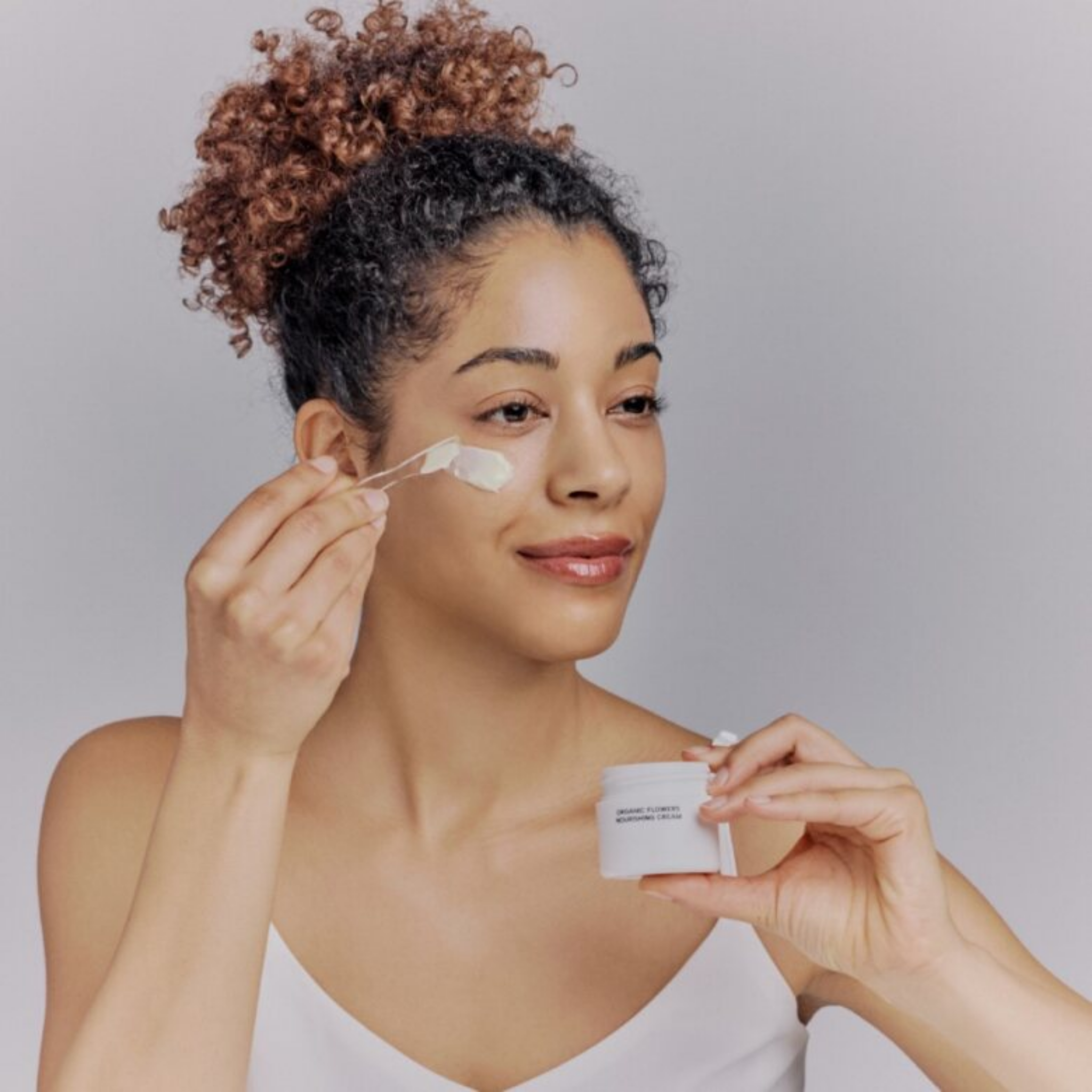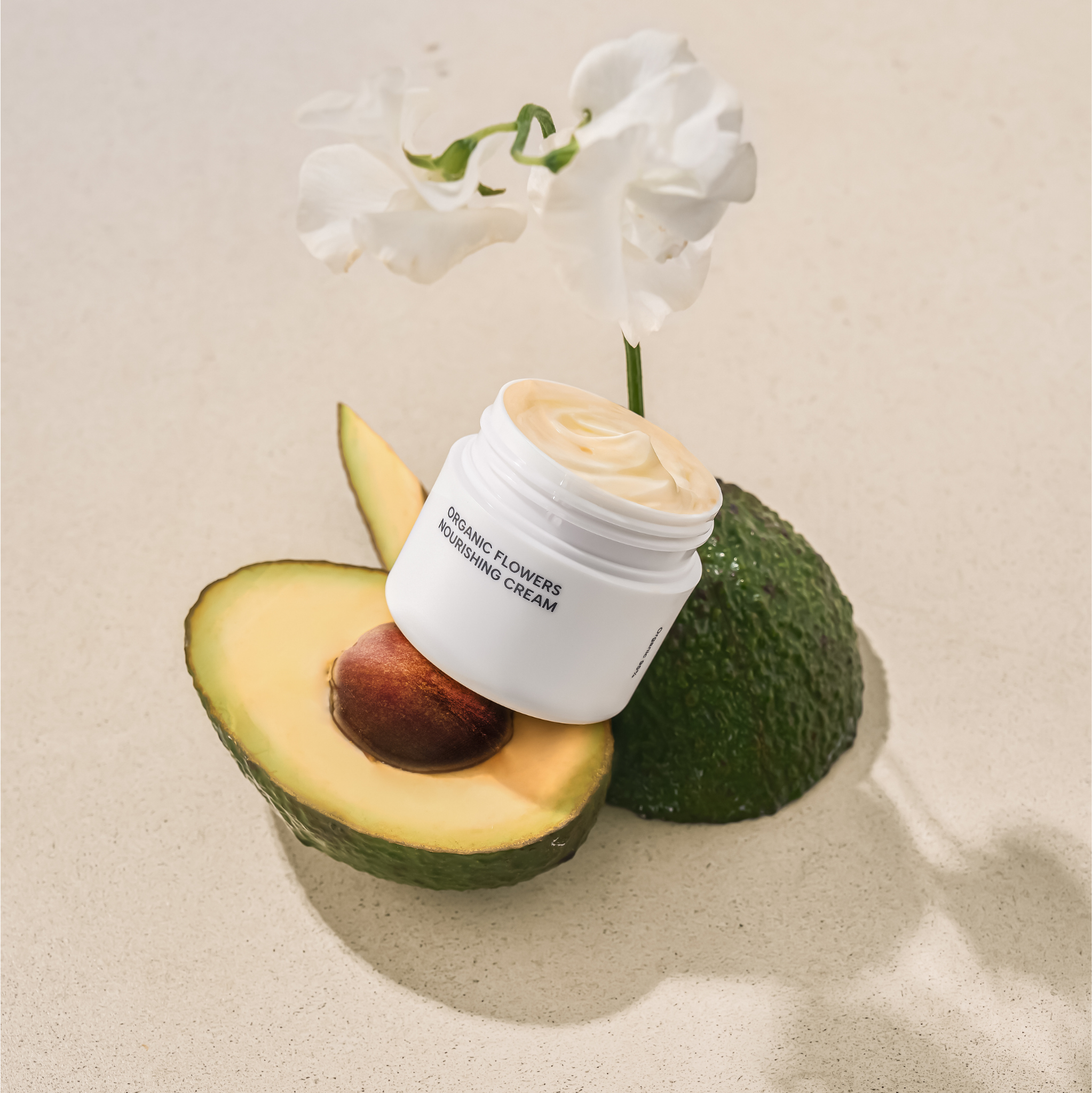 De Organic Flowers Nourishing Cream van WHAMISA is een intensieve, rijke en snel intrekkende crème met anti-aging eigenschappen. De speciale ingrediënten, zoals mango-, cacao-, avocado- en sheaboter, zorgen ervoor dat de huid gevoed, beschermd en merkbaar gladder wordt op de lange termijn. Aloë vera en plantaardige wassen ronden de formule perfect af. Daarnaast is het absorptievermogen van verschillende plantenextracten verbeterd door fermentatie, waardoor de huid er stralend mooi uitziet.
